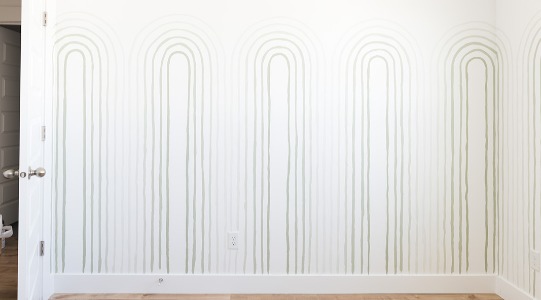 On to painting! To create the ombré effect, start with Softened Green SW 6177 on the first (shortest) arch. Don’t worry about getting the lines straight – organic lines add to the whimsical effect.