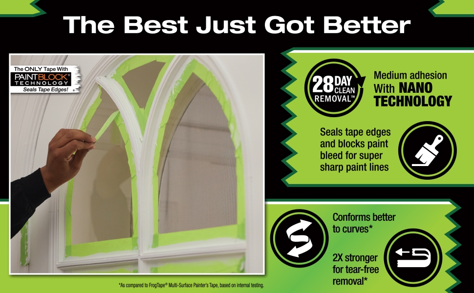 - For Best Results: Remove tape while paint is still wet for super sharp paint lines and professional-looking results; Test before use on all surfaces and when using solvent-based coatings; FrogTape was designed for use with latex paint